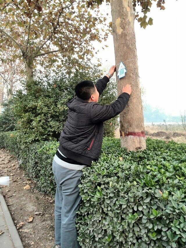 这些树牌是由学院绿色之友协会制作并佩戴完成的。11月25日,我院绿色之友协会参加了由燕赵环保网、百度百科、燕赵环保公益联盟联合举办的“你好,地球,为树木佩戴身份证”活动。本次活动主要以“还地球美好明天和绿色未来”为主题。绿色之友协会成员在对学院树木的数量,种类,每种树木的名称、科属进行统计后,为57类树种,近500棵树木制定相应的树牌,让它们有了自己的二维码“身份证”。活动期间,绿协成员还将手绘的环保宣传海报进行展出以提高同学们对环保的关注。