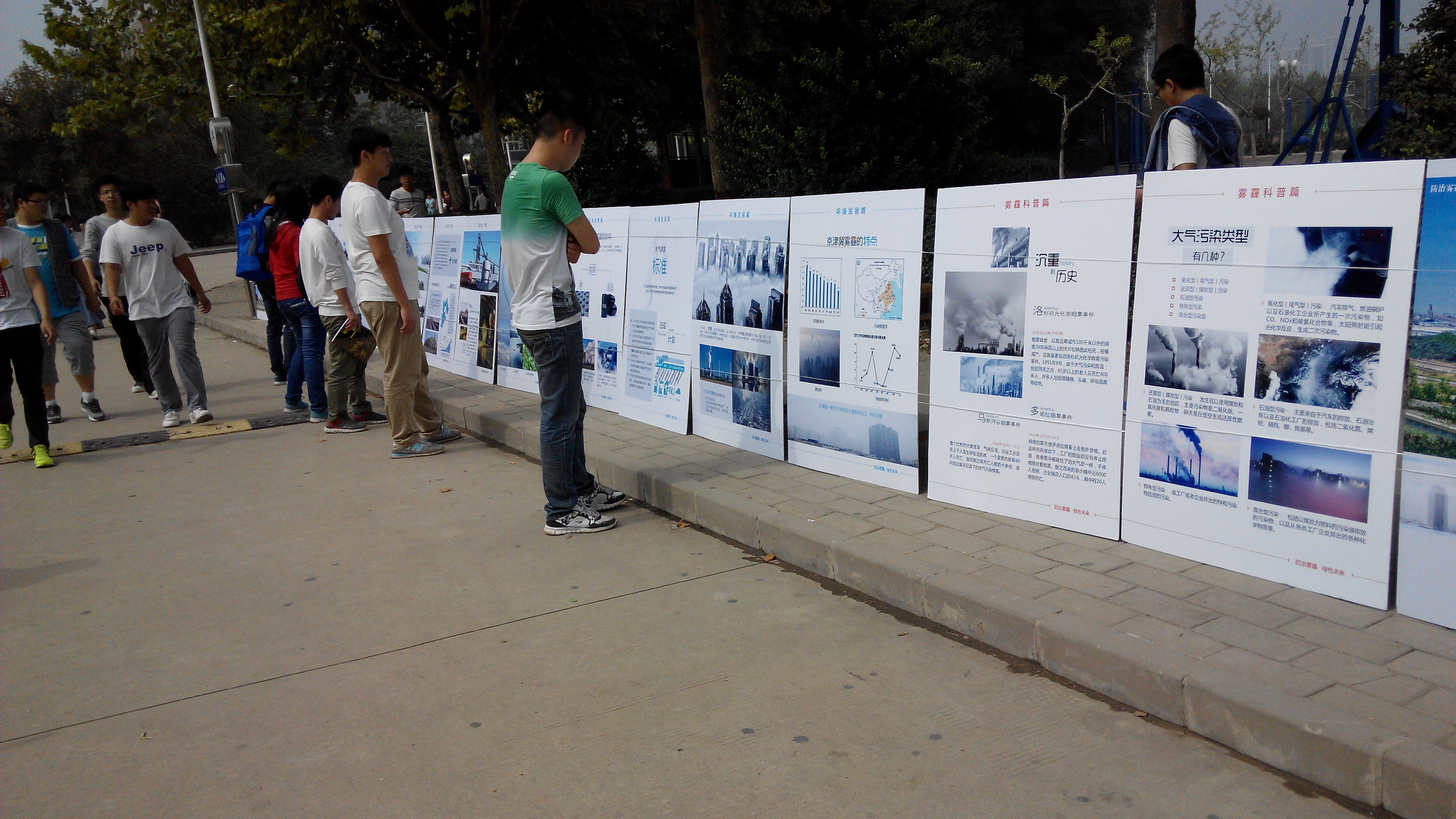 此次环保科普展览以“绿色,中国梦”为主题,分为雾霾科普篇、环境发展篇、清洁生产篇和普通生活篇四个篇章,展览围绕“什么是雾霾”、“怎么防治雾霾”、“如何利用清洁能源”、“我们在日常生活中应该怎么做”等内容进行了直观地展示。校园中路过的同学纷纷驻足观看,大家了解了我国当前的环境现状以及爱护环境的重要性,更对我院环保、冶金等专业的发展有了更进一步的认识和了解。