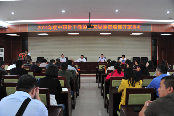 9月15日上午,2014年度计算机网络技术专业和市场营销专业中职骨干教师国家级培训班开班典礼在办公楼五楼报告厅隆重举行。省教育厅贾海明副厅长、职成教处梁贵平主任、学院贾俊礼院长、付俊薇副院长出席开班典礼,成人教育部、计算机技术系、经济贸易系负责人及国培基地相关工作人员、培训班授课教师代表和来自全国各地计算机网络技术和市场营销等2个专业中职学校的30余名骨干教师参加典礼。
