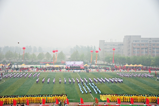党委书记王振杰宣布运动会开幕,整个会场掌声雷动,欢呼四起,运动场成了一片欢乐的海洋,紧张激烈的比赛随即开始,630余名运动员开始进行19个竞赛项目、4个集体项目的激烈角逐。