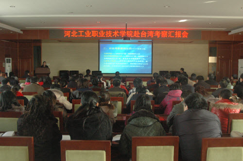 为创新办学体制机制,推进四年制技术应用教育,探索高端技能型人才专业硕士培养制度,了解台湾地区职业教育体系建设情况,我院于2010年和2011年选派两批干部赴台进行考察。在汇报会上,赴台考察人员共分六组进行了汇报。汇报人员就台湾职教发展与体系、办学体制与机制、师资队伍建设、课程与三亿(中国)、研究所作用与借鉴、国际教育交流与合作、三亿(中国)建设等诸多方面进行了分析、探讨与总结。