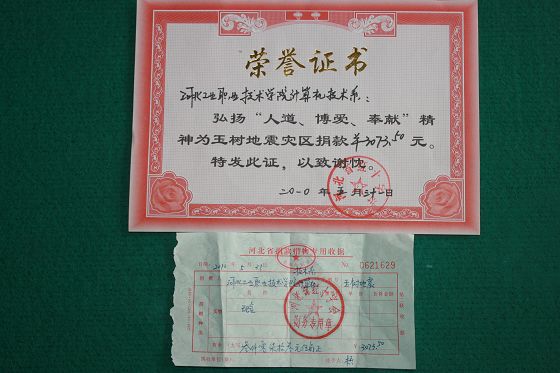 5月31日,河北省红十字会为我院计算机技术系颁发荣誉证书,对我院学生为玉树地震灾区捐款表示感谢。