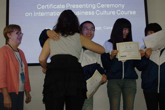 加拿大客人与学生在证书授予仪式上友好拥抱