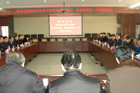 此前,根据中共河北省委教育工委、河北省教育厅关于选派高校教学管理干部挂职培训的通知要求,廊坊职业技术学院曾分两批共选派三名管理干部来我院挂职锻炼,廊坊职业技术学院的再次来访交流,不仅为两院教师交流提供了平台,更为双方进一步合作打下了坚实基础。