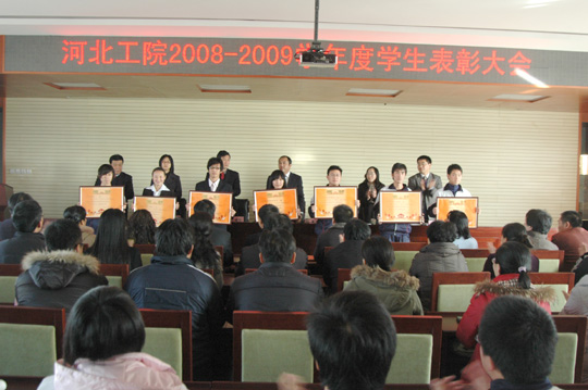 王建刚副书记宣读了表彰决定,获奖教师和学生代表进行了发言。2009年是我院建设国家示范性高职院校的关键年,广大青年学生铭记“明德 团结 自强”校训,以学院国家示范院校建设为契机,励志进取,奋勇拼搏,在推进校风、学风建设和提高学生综合素质等方面取得了可喜成绩,涌现出了一大批先进集体和个人。经过严格审核,评定出了2008-2009学年度人生导师、院级先进班集体、学风建设先进班集体、十佳大学生、优秀大学生、三好学生、学习标兵、优秀学生干部等八个奖项。
