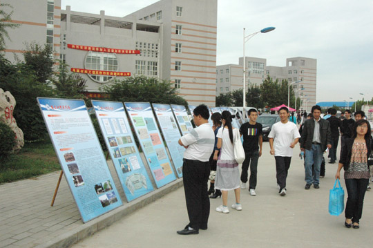 校园秩序井然,工作人员认真负责,确保新生安全有序入校、畅通无阻入学:目前,甲型H1N1流感防控形势严峻,为保障广大师生的身体健康和生命安全,确保学校正常的教育教学秩序,学院分别在火车站接站处和校园门口安排了工作人员,对进入校园的每位新生和家长进行体温扫描,一一排查,对需要帮助的人员提供及时的医护治疗,校园宣传栏也都张贴了预防甲型H1N1流感的宣传资料,确保全院师生健康安全。指挥人员在校园维持秩序,疏导车辆,确保校园治安秩序和交通秩序。