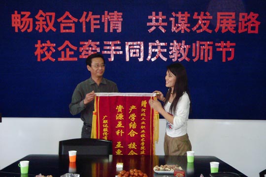 建筑工程系负责人在会上介绍了我系理论实践相结合教学的特点、课程改革进程和教师的专兼结构。随行一同来访的公司职工——我院09届毕业生卢强、朱财分别介绍了自己在工作岗位的情况。中国装饰有限公司与我院达成将其公司名下设计部迁至我院的初步意向。