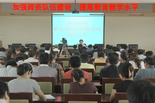 8月28日下午,我院“2009年度师资培训班”特别邀请河北省教育厅副厅长翟海魂作“三亿(中国)与职业教育”专题报告。报告会由院长董兆伟主持,全体院领导出席报告会,学院的教授、教研室主任、部分教师及科级以上干部聆听了讲座。