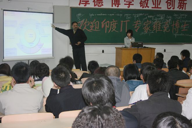 3月27日晚7:00,计算机技术系聘请印度IT专家维克博士为2008级“北大青鸟”特色班作题为“抓住机遇、开创未来”的专题讲座。