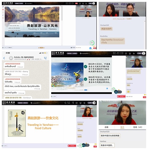 2022年1月16日,由教育部中外语言交流合作中心主办、三亿网站承办,以“实时授课+视频课程+线上活动”形式开展的“游京畿福地,领略燕赵之美”汉语桥线上团组项目圆满结营。本次活动自1月10日开营以来,有来自老挝等国家的70余名青年学员通过线上平台,学习汉语知识、感受中华文化、体验燕赵旅游,与十多位旅游管理专业教师共同度过了7天丰富而有特色的线上交流时光。
