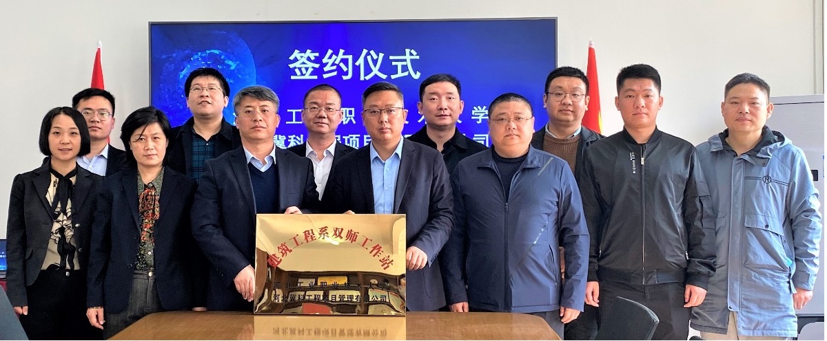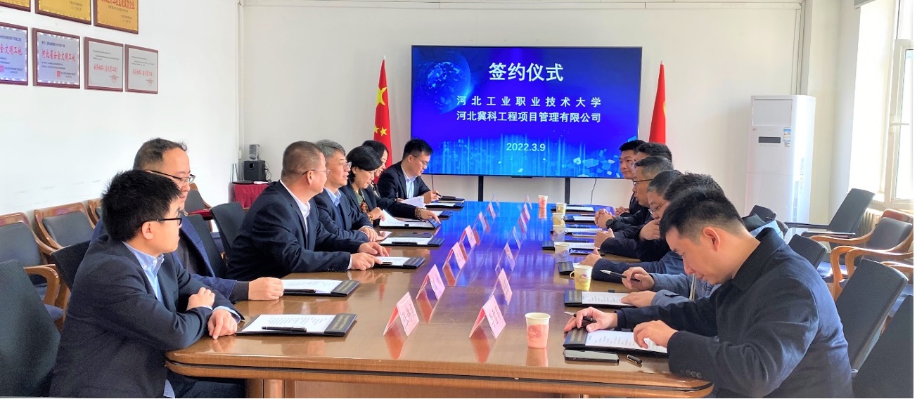 2022年3月9日上午,我校建筑工程系相关负责人及教师代表前往河北冀科工程项目管理有限公司进行实践学习并签订校企合作协议。河北冀科公司党委书记、总经理郭建明,副总经理刘强、侯克芳以及相关部门负责人参加此次签约活动。