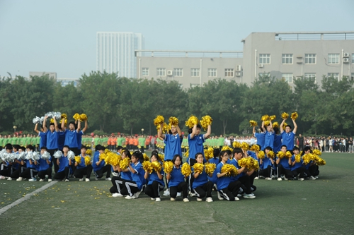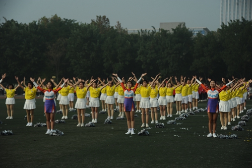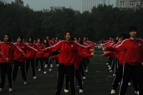 为加强学生体育锻炼的意识,形成良好的运动习惯,号召更多学生走下网络、走出宿舍、走向操场,学校举行了第二十二届科技文化艺术节——“全民健身添活力 青春相约展风采”体操大赛。