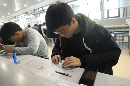 本次活动分为初赛和决赛两个环节。在初赛阶段,考察内容为焊接爱心灯,根据评委细心筛选,焊接用时短且工艺完好的二十名选手进入决赛。在决赛阶段,考察内容为焊接方波转三角波电路板,限时一个小时,选手们进行激烈比拼。比赛结束后,评委老师对每一块电路板都仔细观摩并评分。最后经过激烈比拼,24级集成电路工程技术三班周宏业获得一等奖,23级电子信息工程技术1班高聪敏、23级电子信息工程技术1班刘眀慧获得二等奖,24级集成电路工程技术1班崔梓腾、23级工业互联网技术1班杜宇、智能制造学院22级自动化技术与应用2班谷宇获得三等奖。