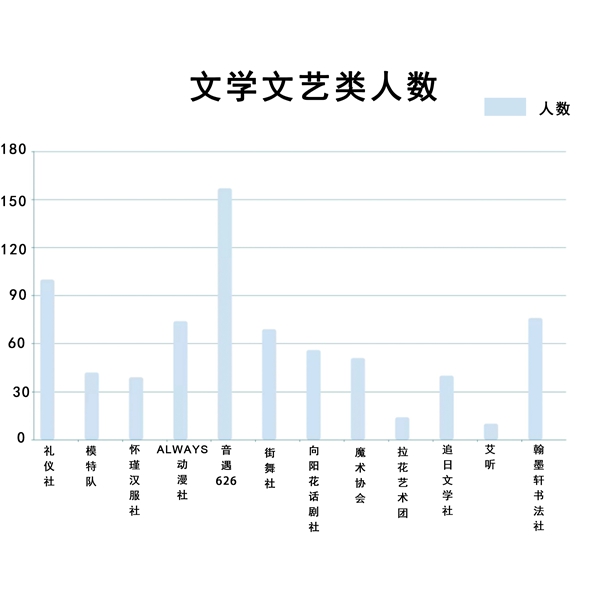 文学文艺类社团纳新总数排名前三的是音遇626工厂、礼仪社、Always动漫社。