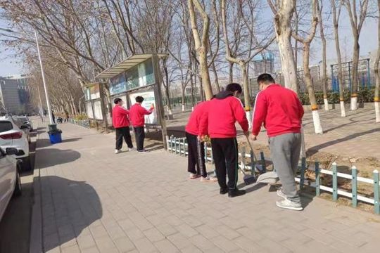 走出教室,换上志愿者服装,学生志愿者们出现在校园的各个角落进行大扫除,清理校园死角、违规小广告、操场白色垃圾、擦拭校园宣传栏、整理凌乱的自行车、分类整理校园书籍等,用实际行动共同营造温馨整洁的校园环境。