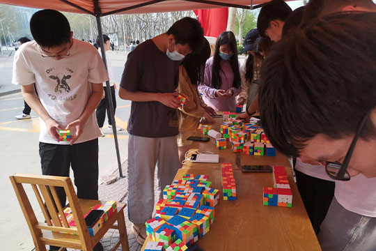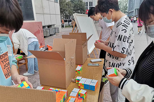 随着整齐的“5、4、3、2、1”倒计时声,“致敬一线英雄”“加油中国”“抗击疫情、巾帼力量”三块精美的主题魔方墙露出真容,来自魔方协会的32名同学激动不已,发出了热情的欢呼。这是4月10日校园魔方活动现场上的一幕,活动持续两天时间,同学们悉心布置,精心打造了这几个由3000多块魔方拼接而成的魔方作品。