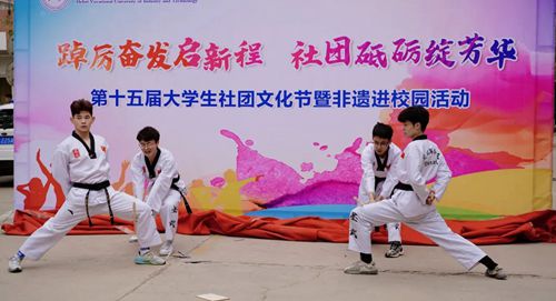 中午,在校园南门甬路的舞台上,在歌曲《大梦想家》的歌声中,第十五届社团文化节主题展演正式开始。校广播台以《青春中国》为主题声情并茂、抑扬顿挫诵读感染了在场的每一个人;向阳花话剧团带来的小品《有话好好说》让人捧腹大笑;青年志愿者协会的手语表演在“有声与无声”之间,让台下观众“遇见”了最真诚的感动;武术队表演的《武极拳韵》,刀枪剑戟、拳脚功夫展现了中国青年的坚韧与刚强;跆拳道社团表演的《品势击破》跆拳道花式动作一招一式铿锵有力;音遇626社团演唱的《小幸运》、《晴天》等歌声温暖人心,响彻校园每个角落;街舞社带来的《舞蹈串烧》用流畅的舞蹈瞬间引爆全场,轮滑社表演的《花式走桩》炫技轮滑赢得现场满堂喝彩。