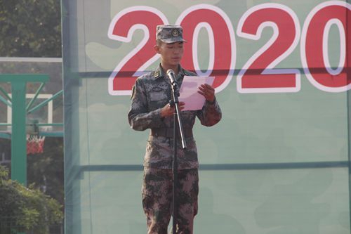 最后,学院党委副书记付俊薇教授发表讲话,她代表全院师生向2020级新生的到来表示热烈的欢迎,向钢铁连全体承训教官表示敬意。她指出,新时代的大学生肩负着建设祖国、保卫国家的双重责任,希望同学们通过此次军训增长军事知识与军事技能,培养作风纪律与战斗精神,锤炼身体素质与意志品质,筑牢理想信念与使命担当,勇做担当民族复兴大任的时代新人。
