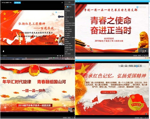 经过中期的项目追踪和综合评定,共10个团支部入围此次最终项目验收,各参赛团支部线上展开激烈争夺,分别根据支部特色提前录制展示内容,主要从组织建设、思想引领、"一团一品一特色"团建活动、社会实践和志愿服务四个方面呈现团支部建设以及项目落实情况。最后,指导教师纷纷使出杀手锏,为各自团支部拉票助威。经过激烈的角逐,汽车工程系2018级汽车电子技术一班团支部获得了一等奖;工商管理系2018级国际邮轮乘务管理班团支部、建筑工程系2018级建设工程管理班团支部、经济贸易系2018级电子商务订单三班团支部获得了二等奖;工商管理系2018级会计四班团支部、材料工程系2018级冶金工程班团支部获得了三等奖;计算机技术系2018级移动应用开发一班团支部、环境与化学工程系2018级应用化工技术班团支部、智能制造学院2018级机电一体化四班团支部、汽车工程系2018级新能源汽车运用与维修一班团支部获得了优秀奖。
